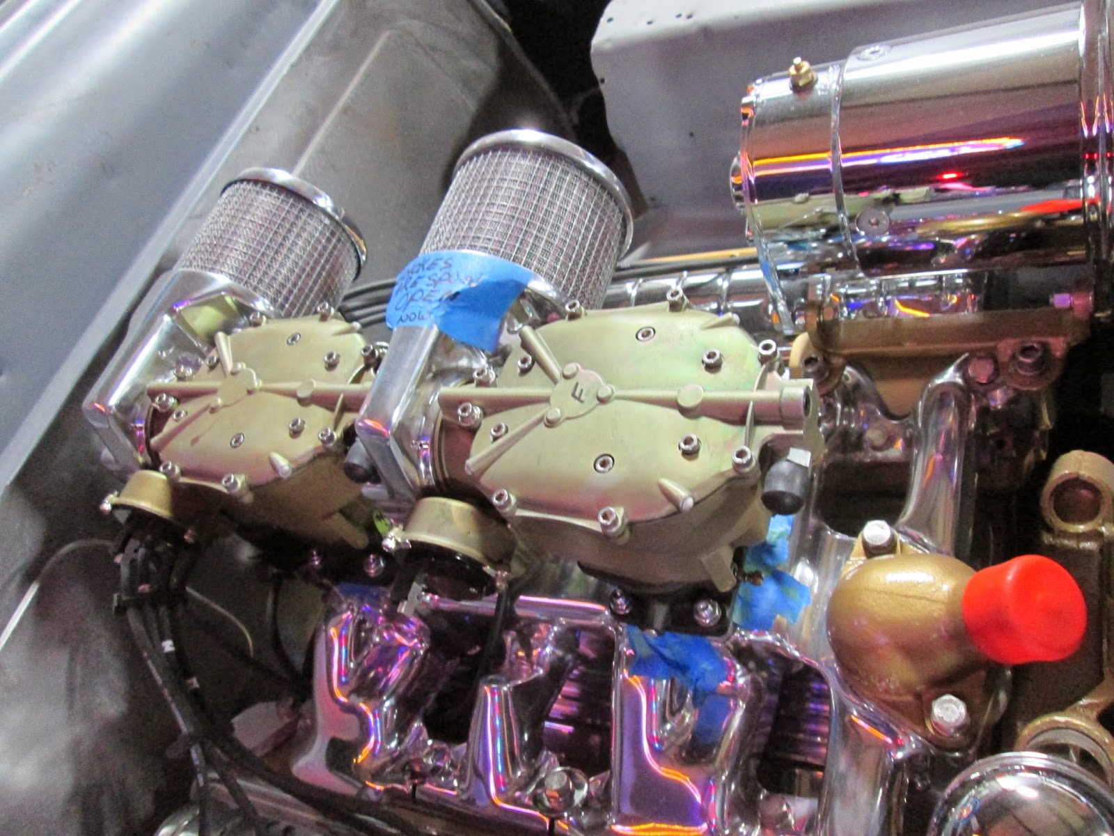 So, I figured If I was gonna be at the biggest hot rod show in the country, I'm sure I'd see some motorcycle booths. And since it's Austin, I figured my buddy Bacon would be there. Sure enough, I spotted the DC Choppers bikes from the coffee vendor's airstream trailer. If you don't know Dan "Bacon" Carr then you won't understand just the kind of man he is. The Canadian James Dean as I like to think of him, Bacon is a motor-building mad man and builds some of the coolest choppers around thanks to his buddy that works with him ________ (totally forgot his name). Bacon is currently US distributor for Motortechnic Manufacturing, a Germany company that makes knucklehead cases, as well as some bitchin clutch hubs. Dan even put us up in his shop for the nite so we wouldn't have to sleep in a tent, and then introduced us to Opies BBQ- If you are ever in Spicewood, TX, you HAVE to eat there. Get the brisket, it's unreal!